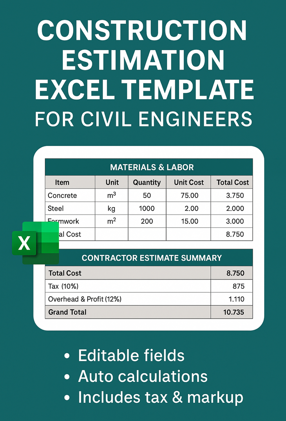 Save hours of work with this professional Excel-based construction estimation template, designed specifically for civil engineers, contractors, and project managers.